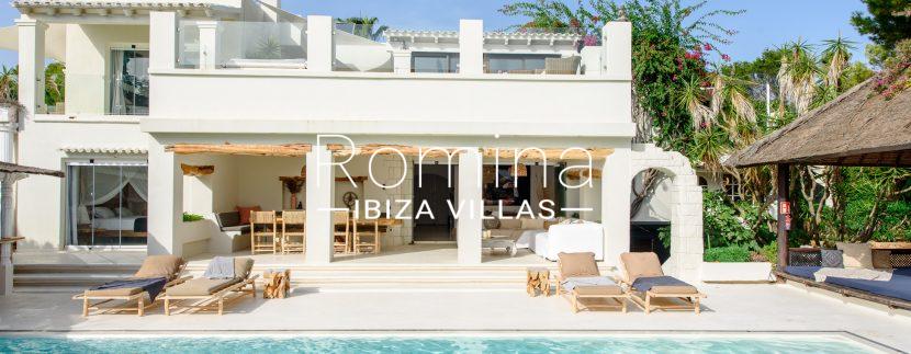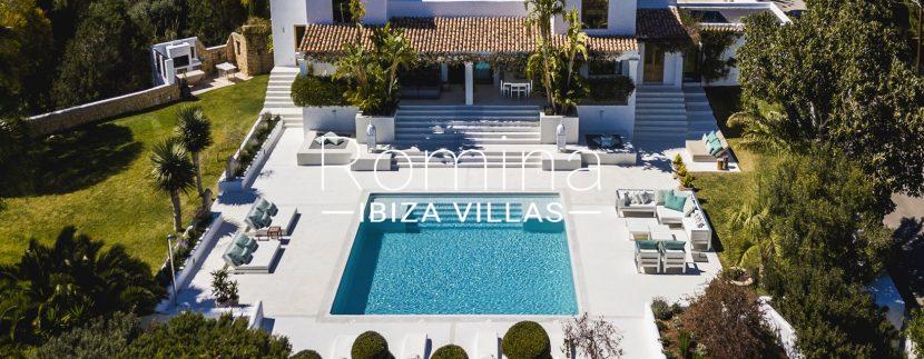 This luxury residential sits on a front-line 3.693m2 plot and enjoys unobstructed sea views over the Mediterranean Sea and Formentera.