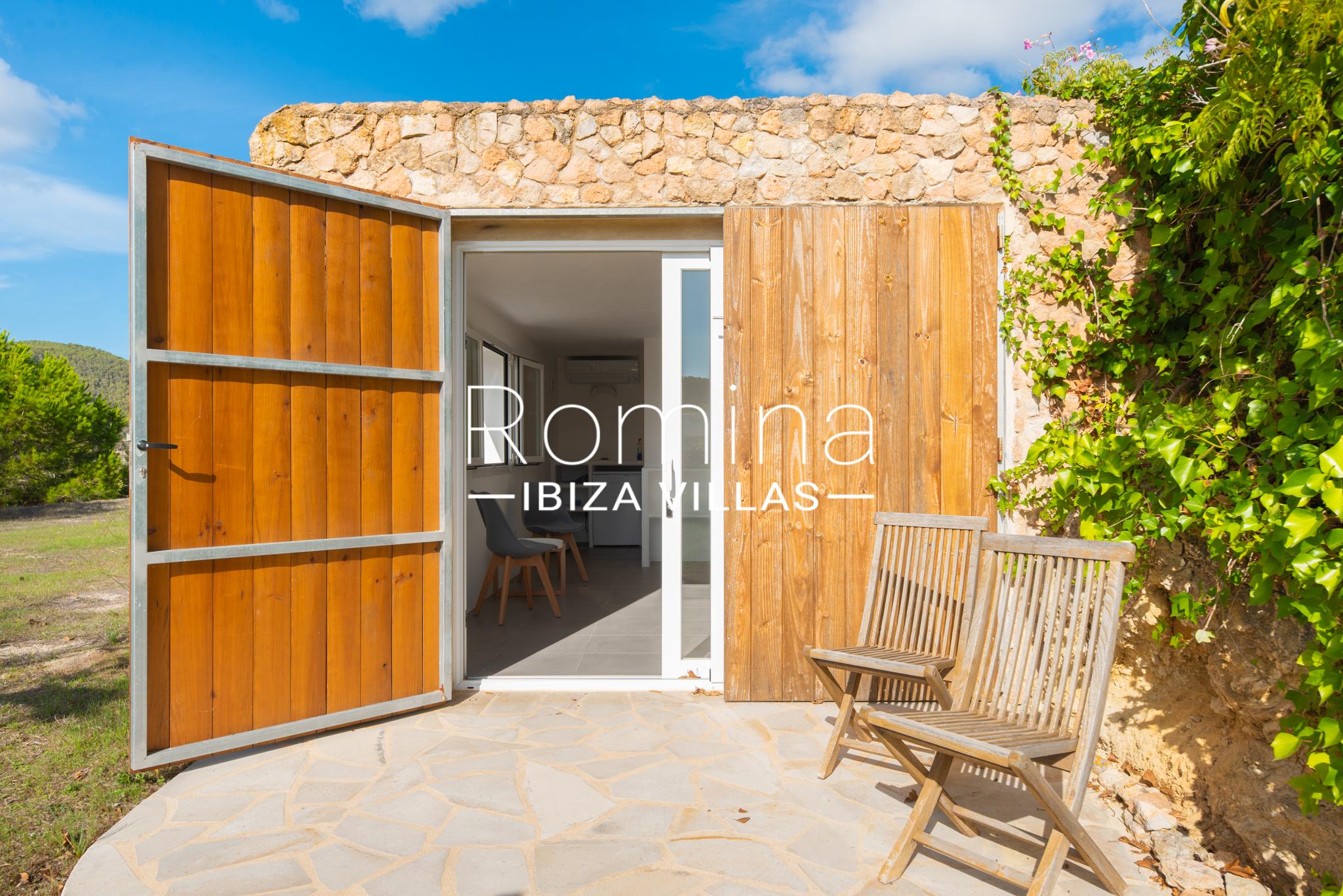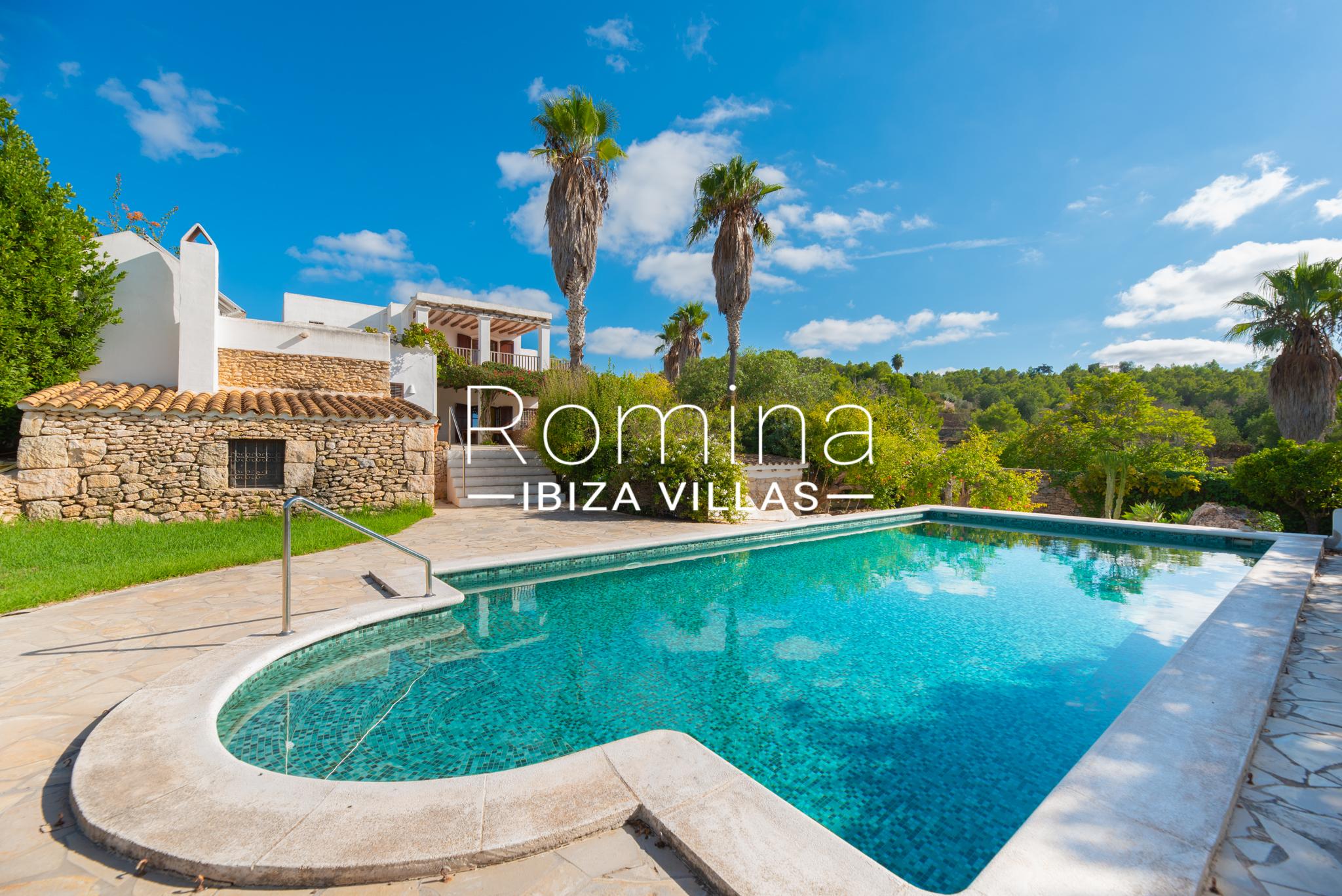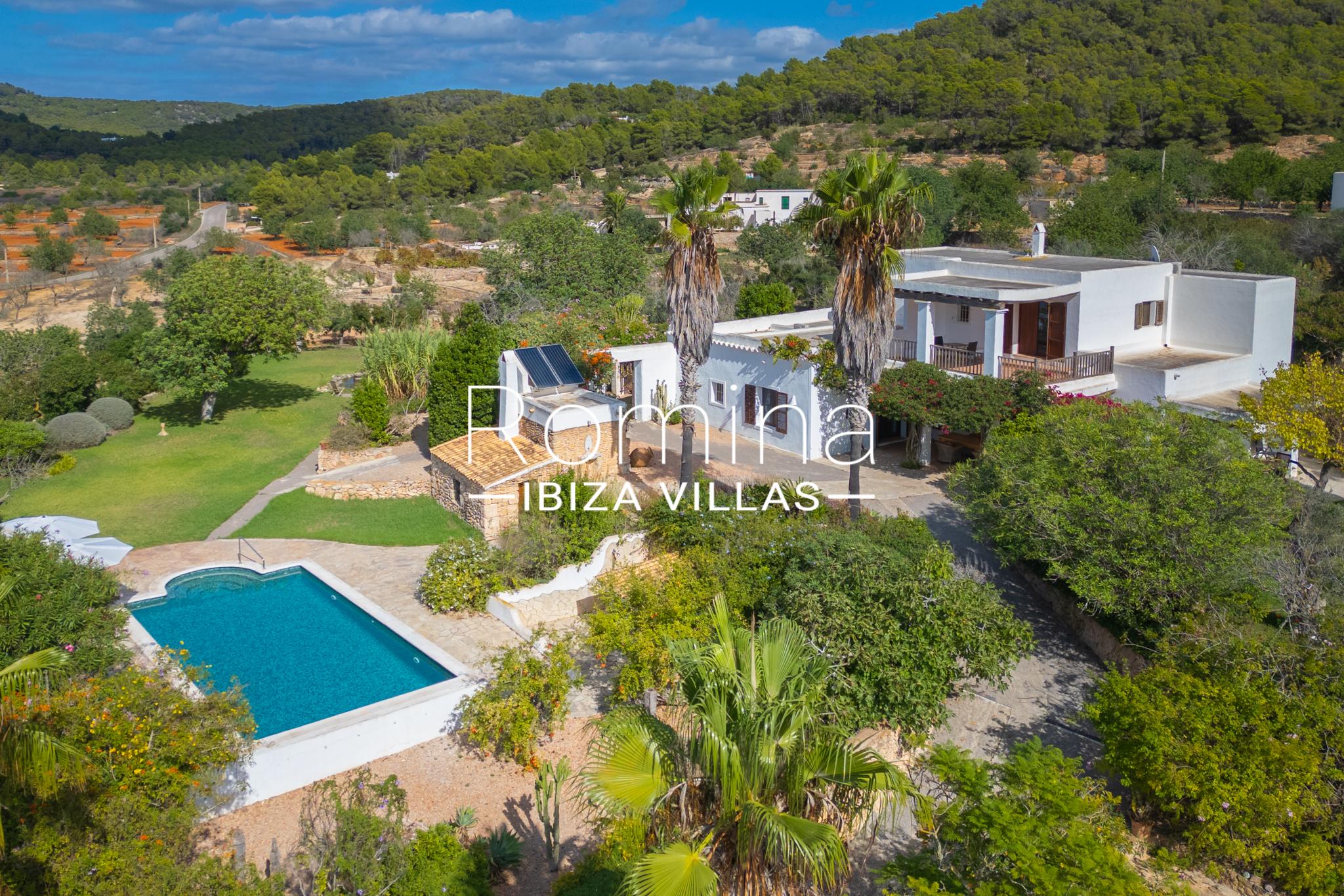 Outdoors, the estate includes a swimming pool, covered terraces and a lovely outdoor dining area. Set on an 11,000 m² plot with almond, olive and carob trees, this property is a true haven of tranquillity in one of Ibiza’s most enchanting locations.