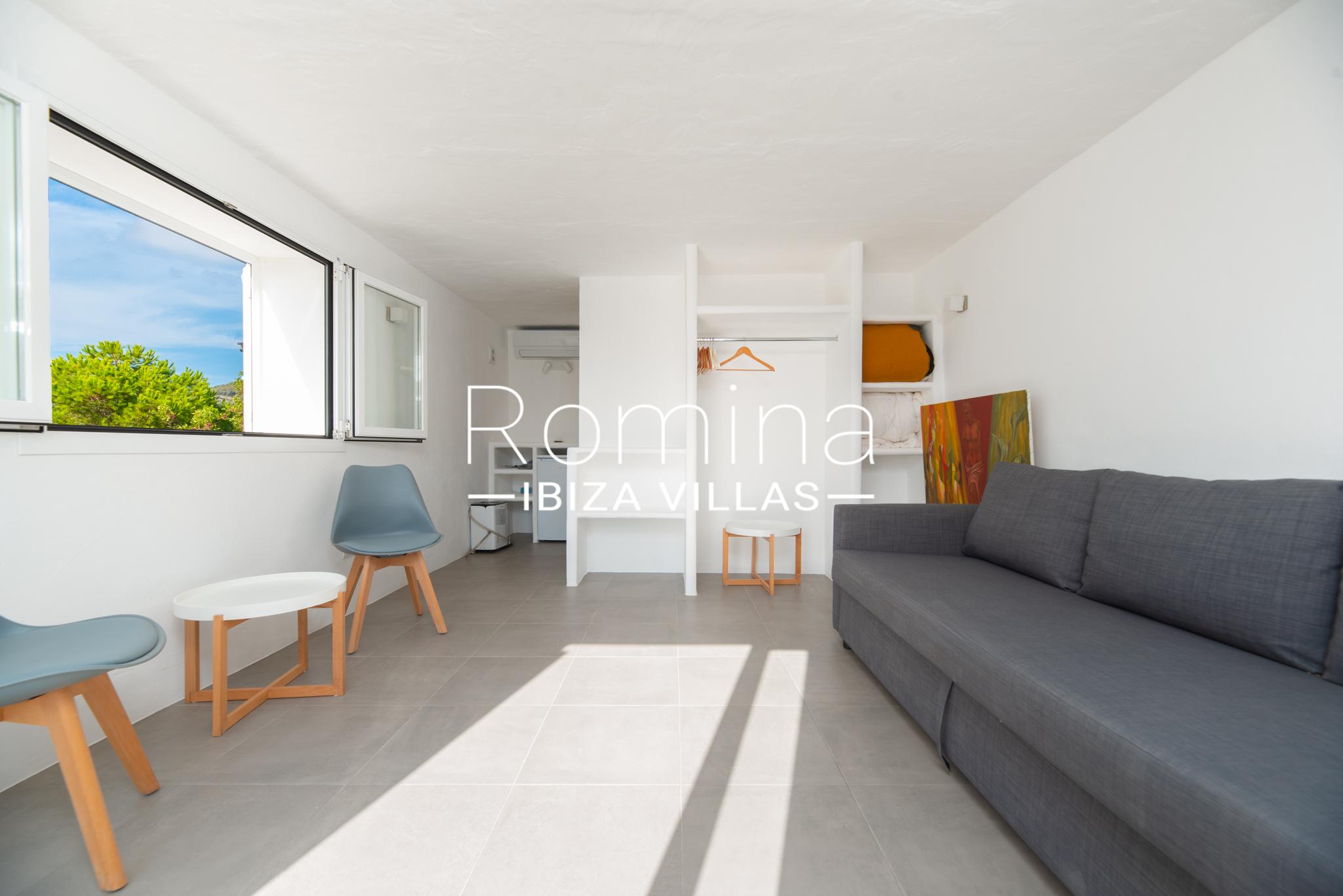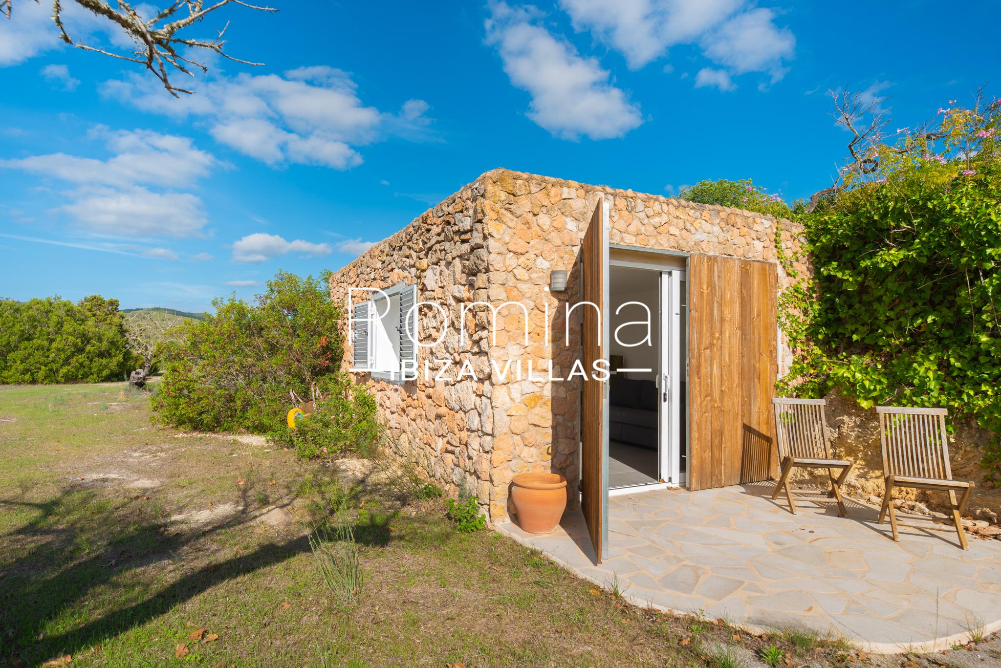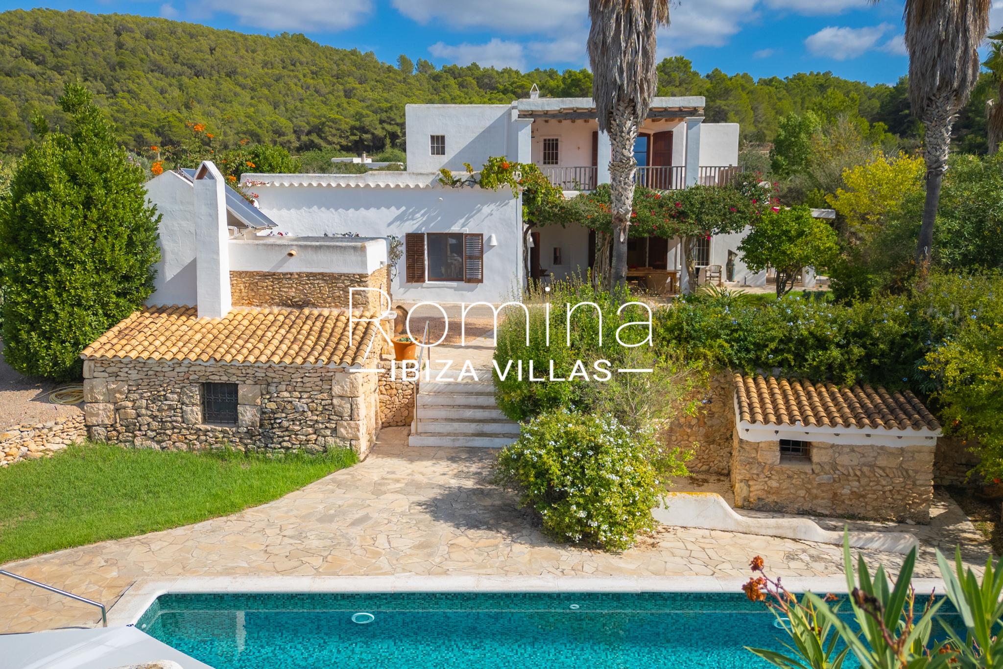Outdoors, the estate includes a swimming pool, covered terraces and a lovely outdoor dining area. Set on an 11,000 m² plot with almond, olive and carob trees, this property is a true haven of tranquillity in one of Ibiza’s most enchanting locations.