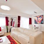 living room with open kitchen, a guest bathroom, 2 bedrooms with en-suite