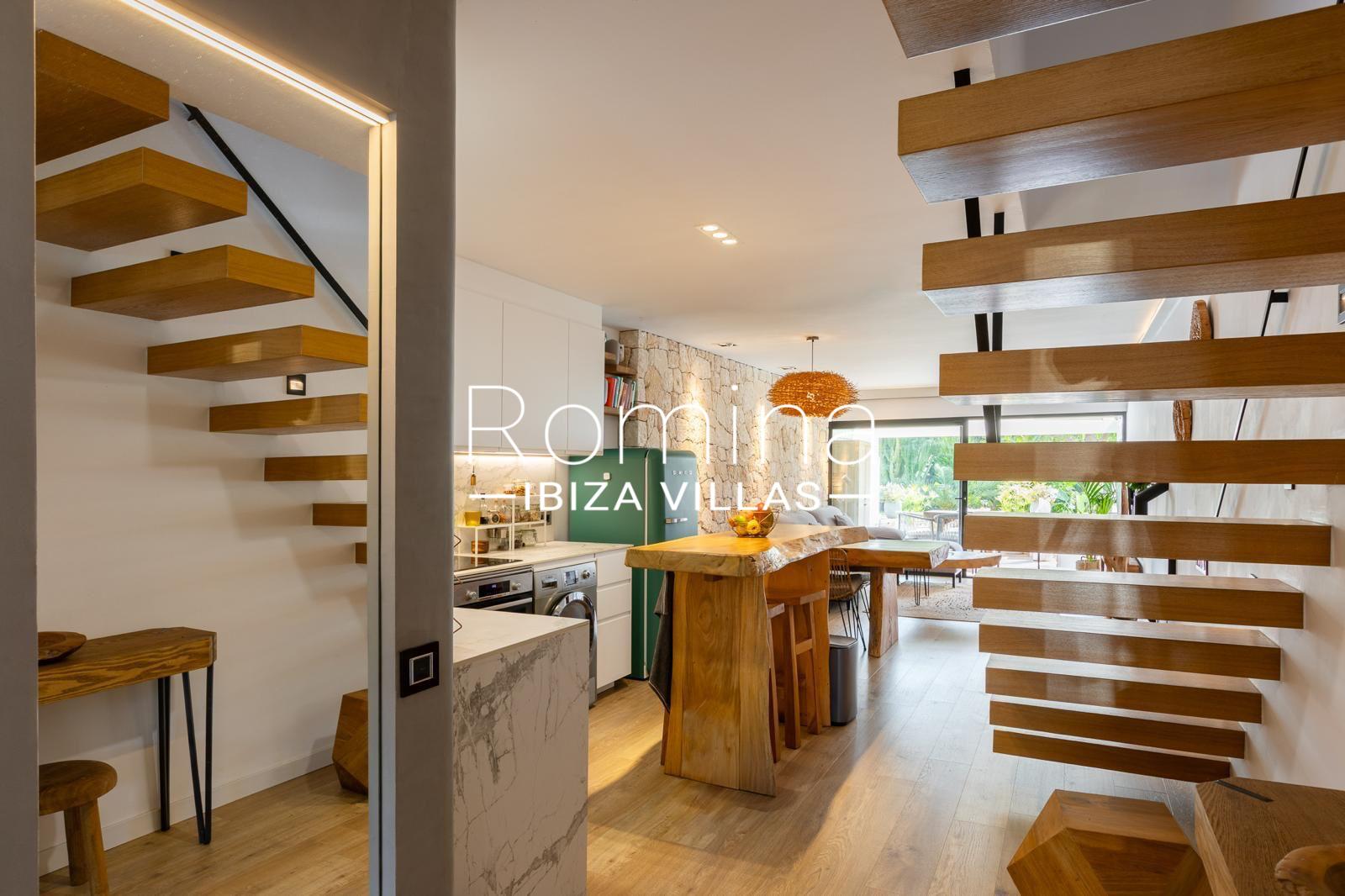 • Escalier suspendu design, unique dans la résidence.