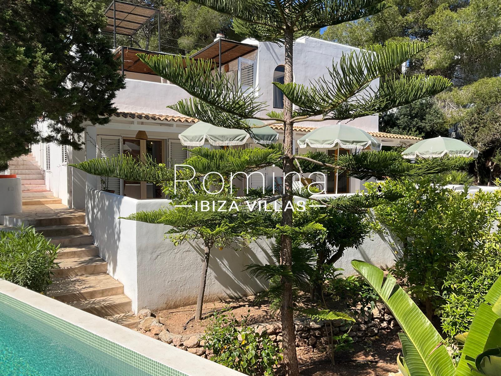Charmante villa de style méditerranéen située non loin de la plage de Cala Llenya à environ 3 km du village historique de San Carlos sur la côte nord-est de l’île. Elle se trouve dans un cul de sac tranquille. Orientation sud, est.