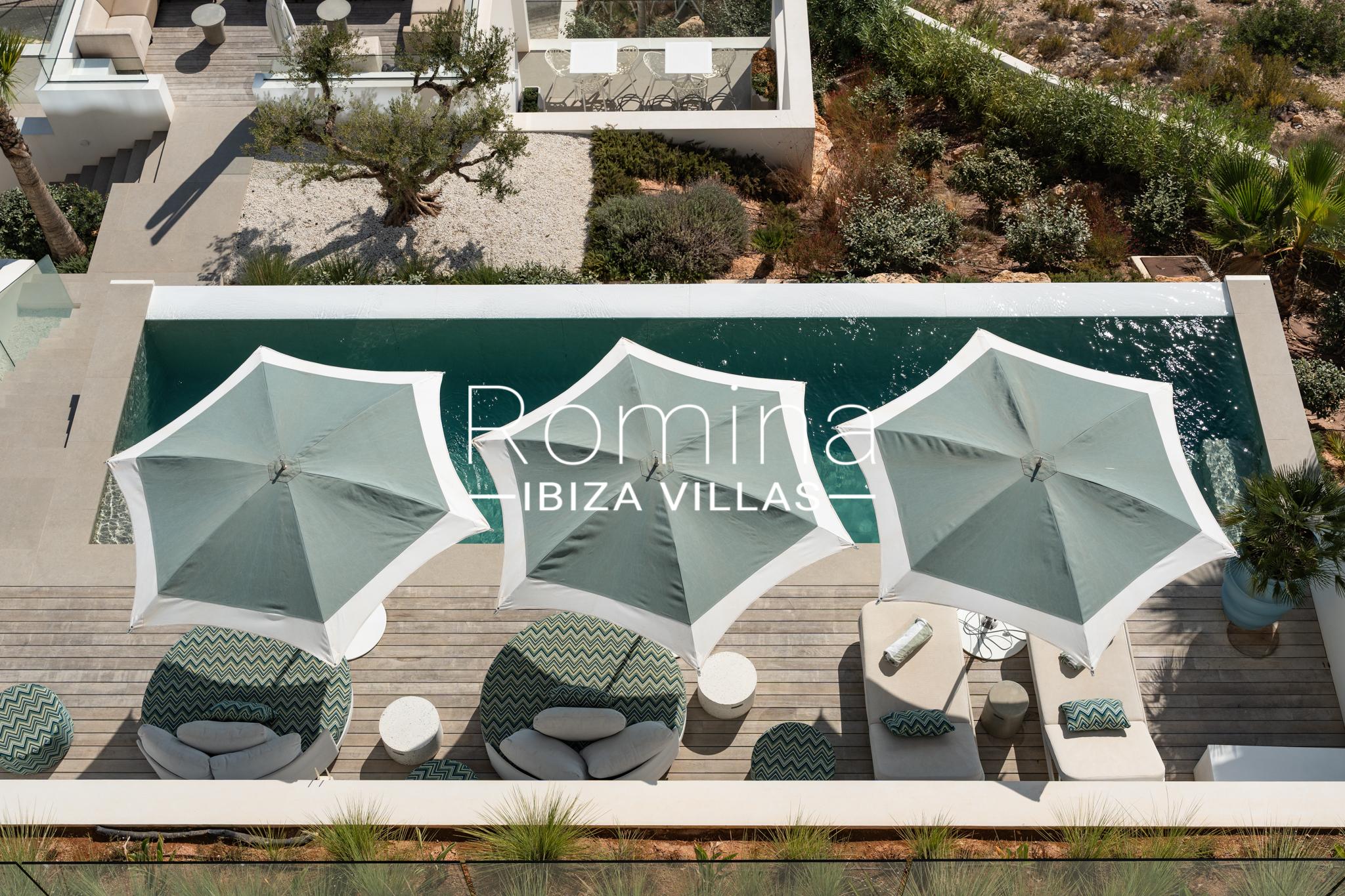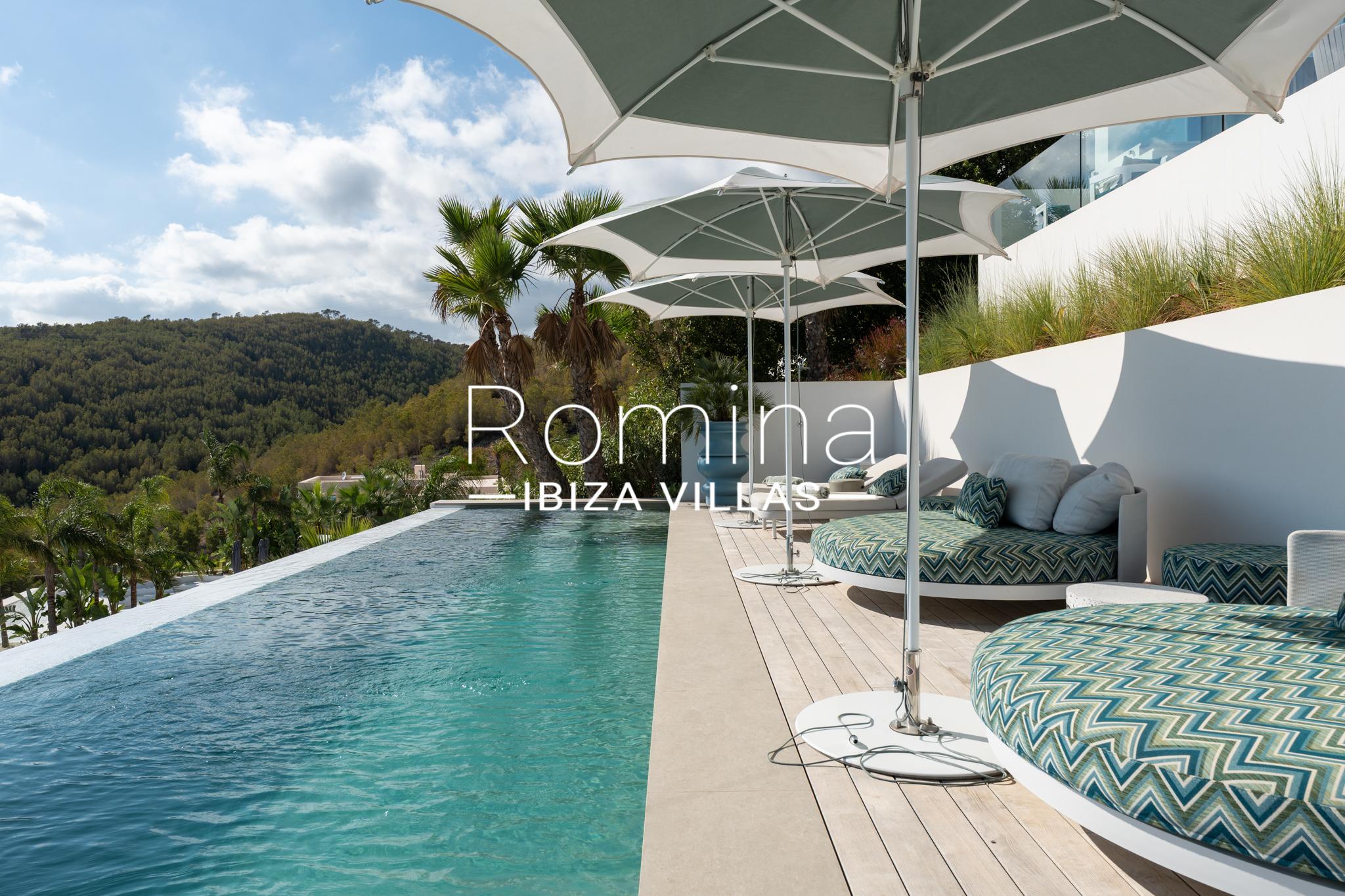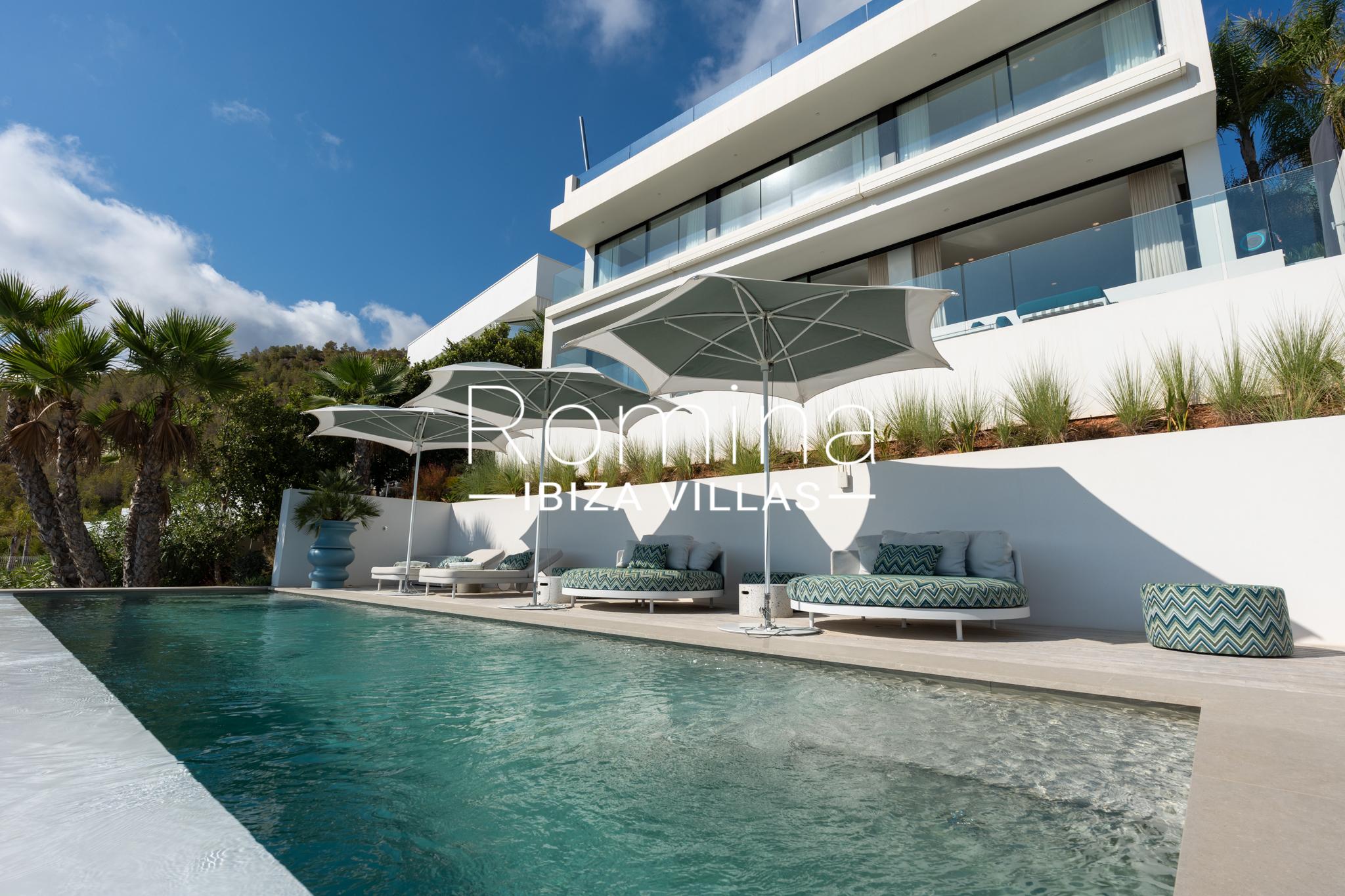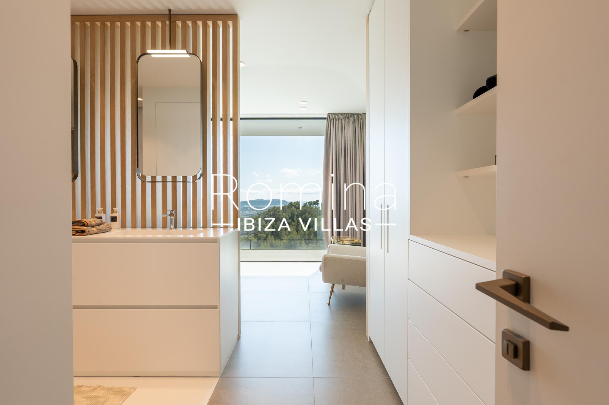 Implantée sur un terrain de 2 500 m², la villa développe environ 550 m² habitables et bénéficie de vues panoramiques exceptionnelles sur la mer Méditerranée, Formentera et la ville d’Ibiza. Son orientation assure une luminosité naturelle constante ainsi que de superbes couchers de soleil.