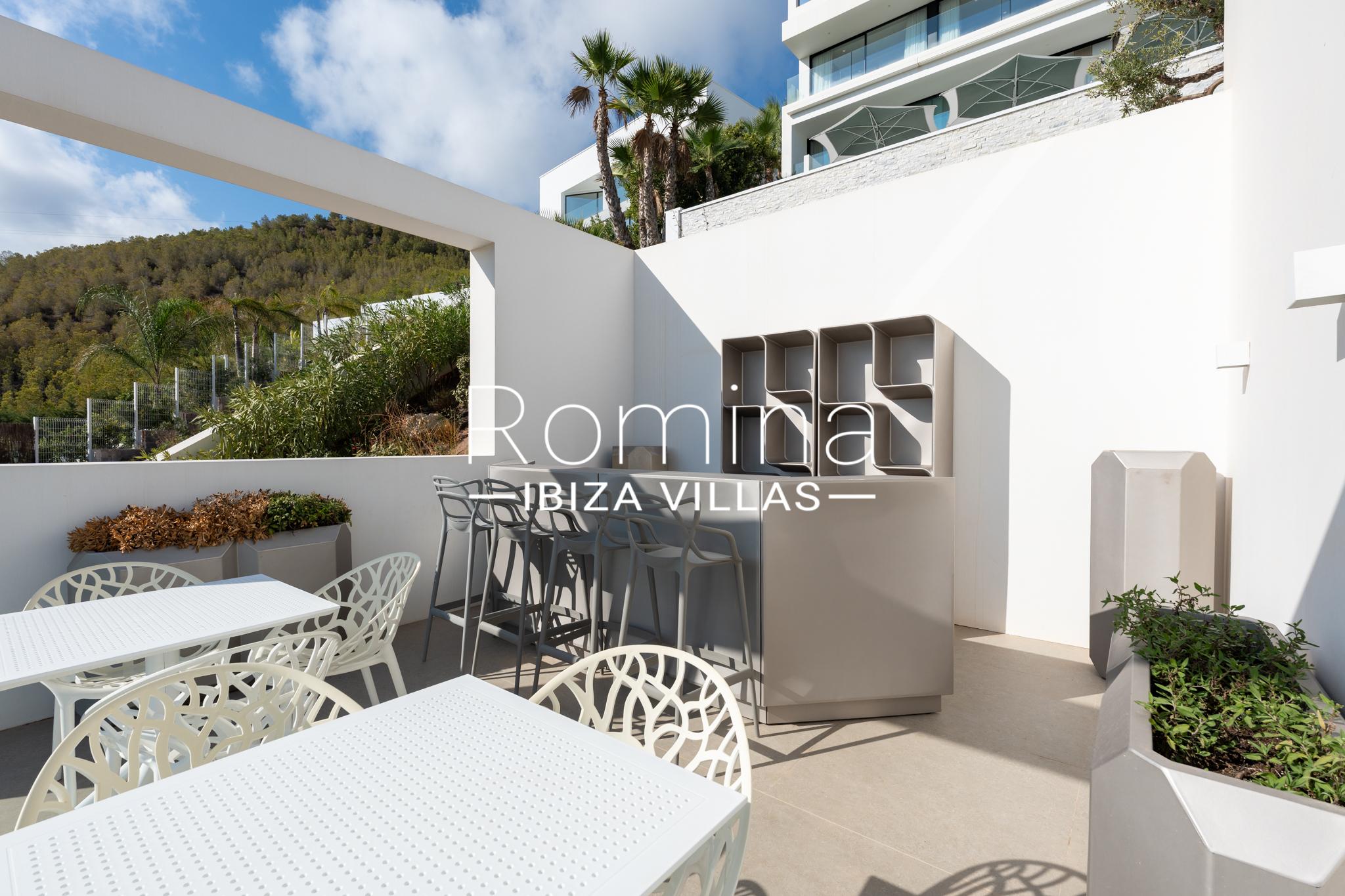 La propriété comprend quatre chambres spacieuses avec salles de bains en suite, avec la possibilité d’aménager une cinquième chambre ou un espace polyvalent tel qu’un cinéma privé ou un bureau. Les espaces de vie ouverts et lumineux s’ouvrent sur les terrasses grâce à de larges baies vitrées.