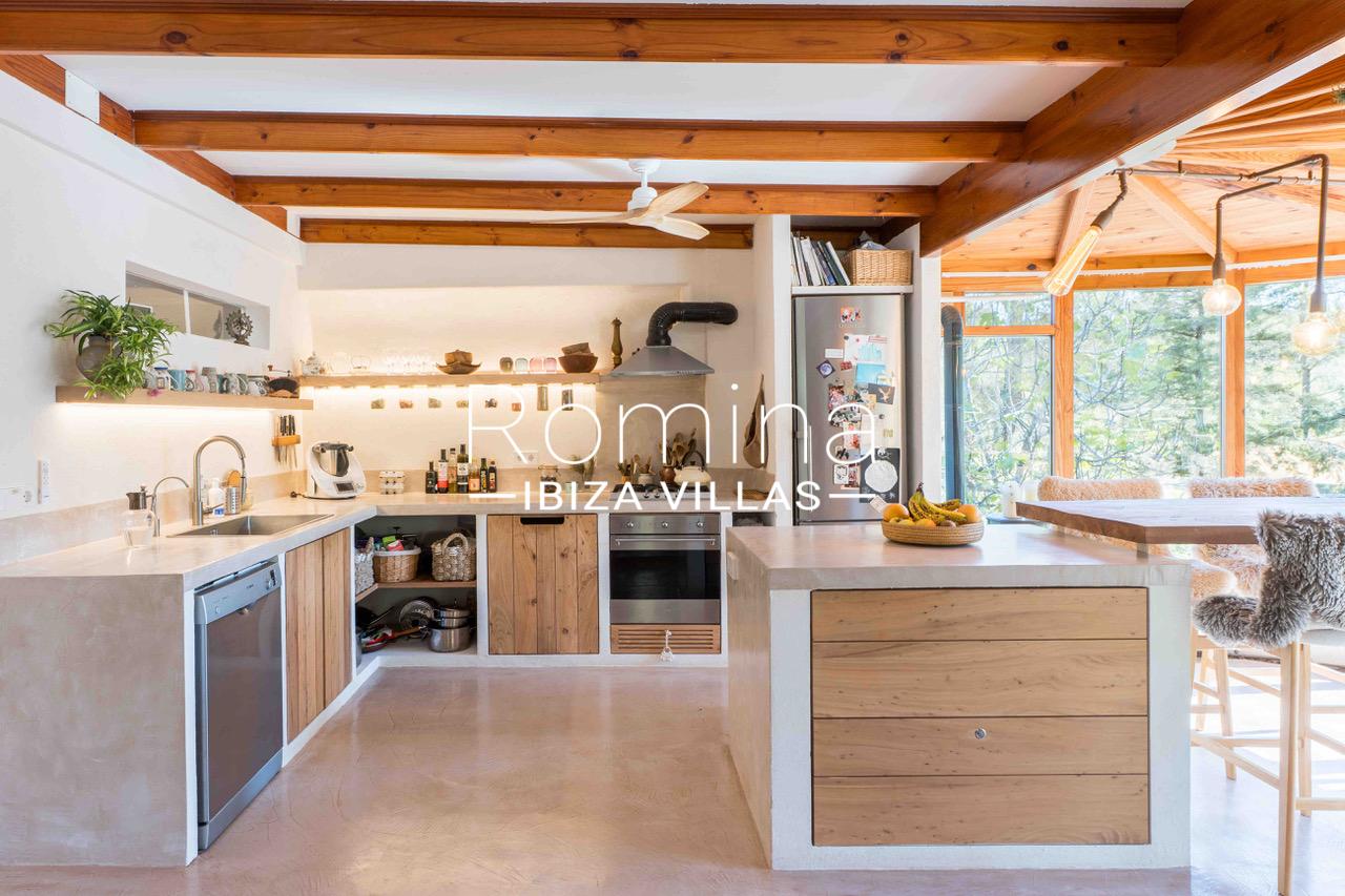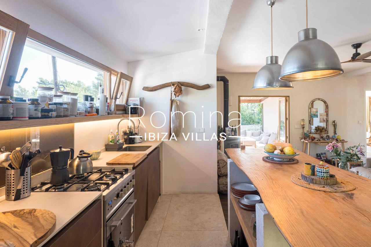 La maison principale comprend des espaces ouverts et lumineux, une cuisine moderne, un salon avec cheminée et une véranda couverte avec salle à manger et cuisine d’été.