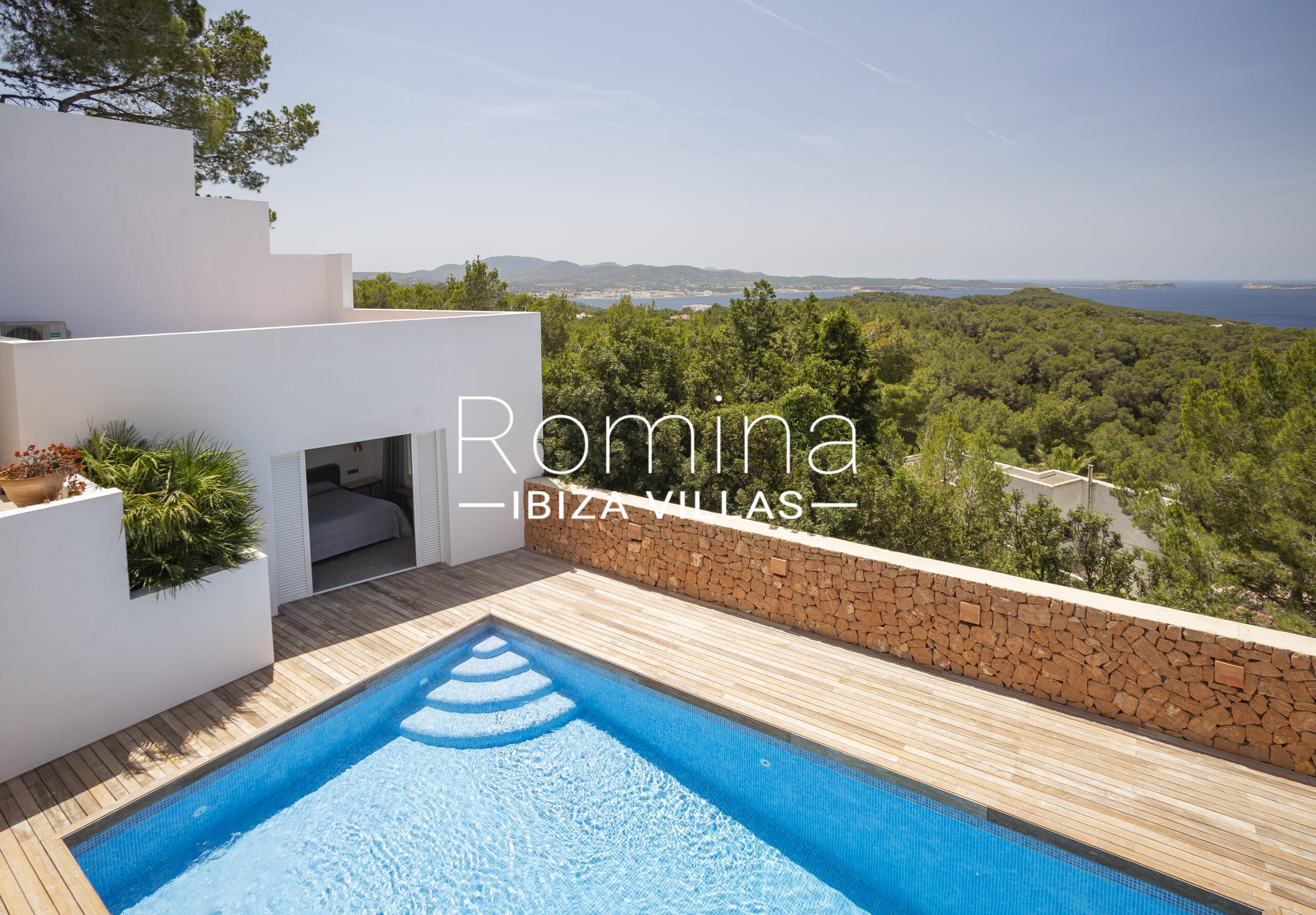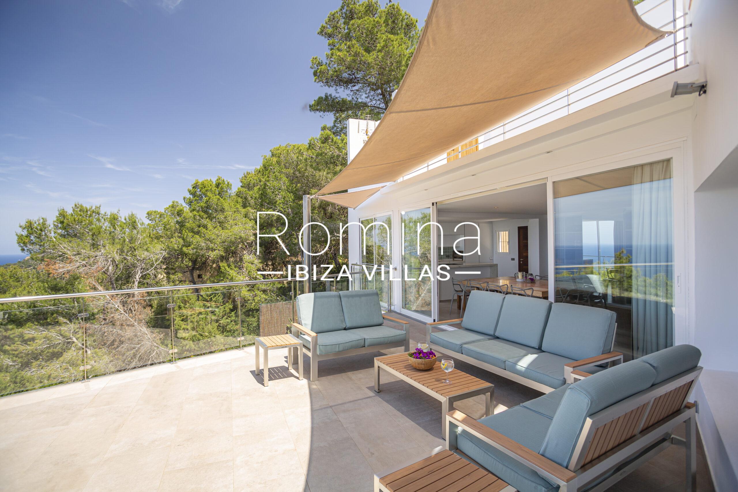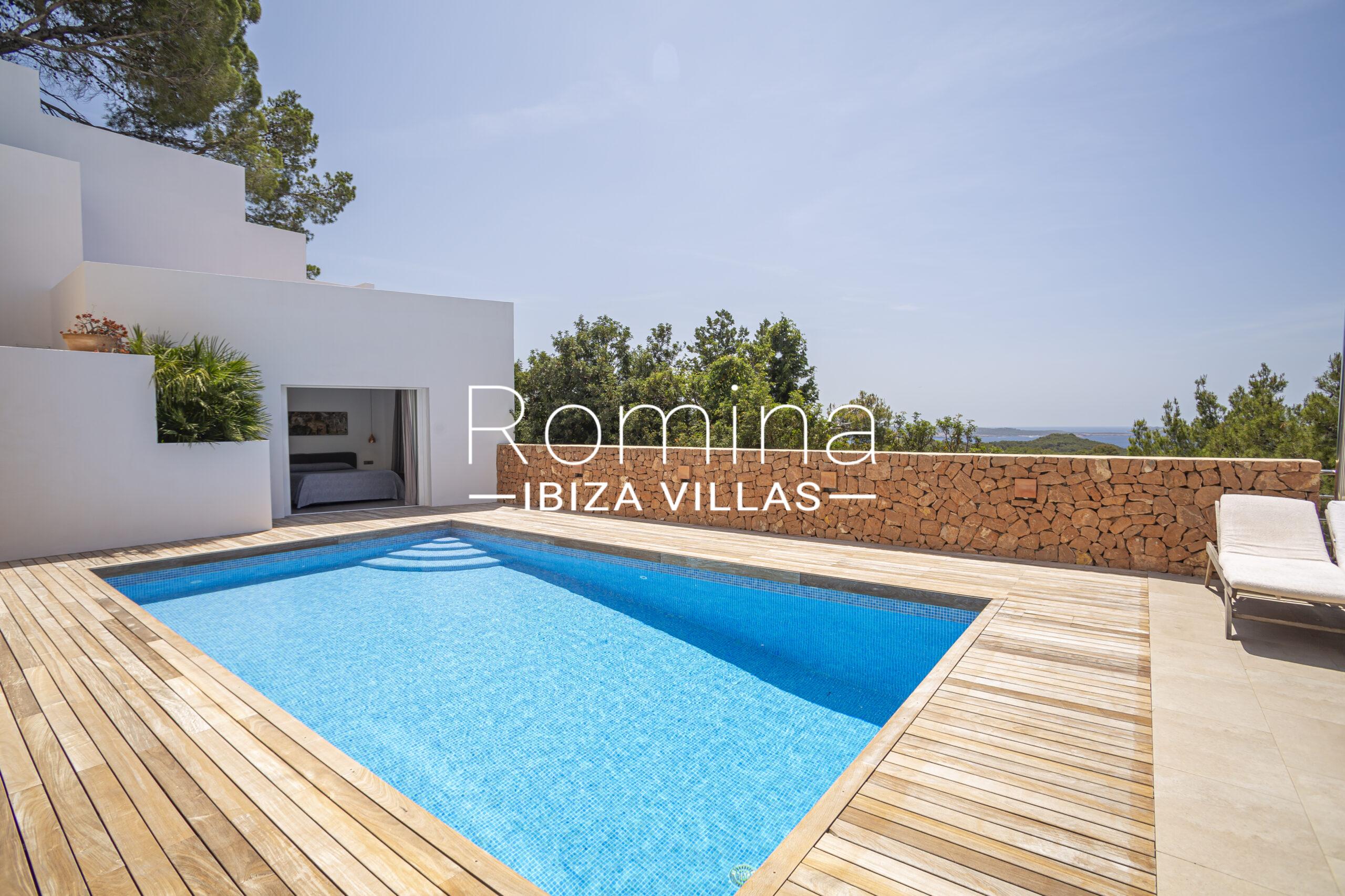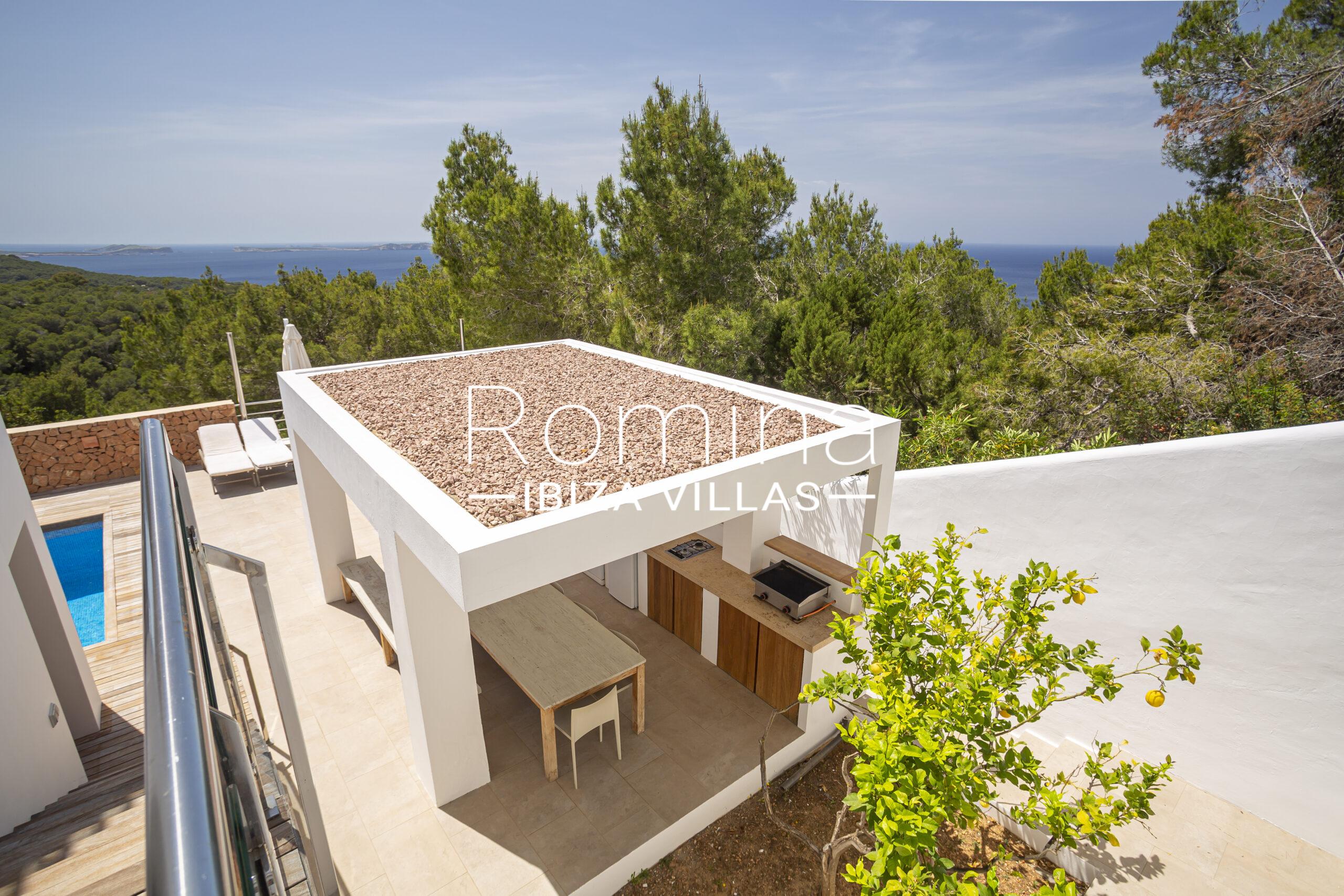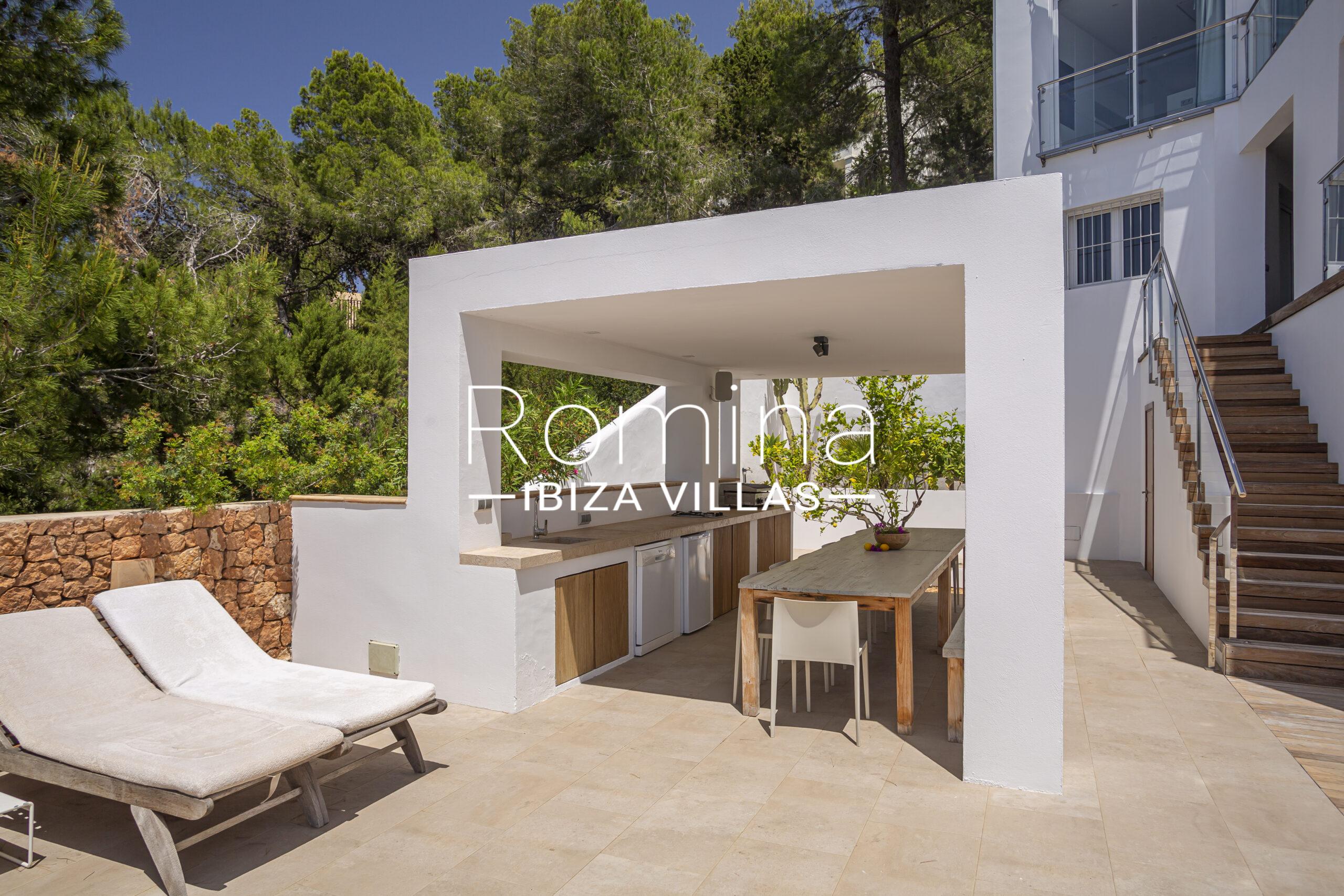 Las zonas exteriores han sido cuidadosamente diseñadas para disfrutar del estilo de vida ibicenco, con piscina rodeada de solárium, cocina exterior con barbacoa, amplias terrazas y una terraza superior con zona chill-out ideal para disfrutar del atardecer y reuniones sociales.